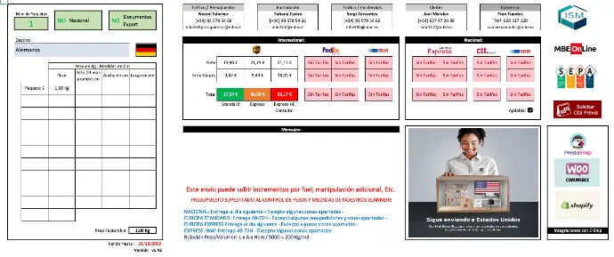 Calculador de tarifes personalitzat a les necessitats de cada client en format excel.